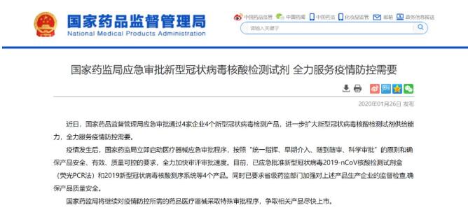 ¿ËÈÕ£¬¹ú¼ÒÒ©Æ·¼àÊÓ¹ÜÀí¾ÖÓ¦¼±ÉóÅúͨ¹ý4¼ÒÆóÒµ4¸öÐÂÐ͹Ú×´²¡¶¾¼ì²â²úÆ·£¬½øÒ»²½À©´óÐÂÐ͹Ú×´²¡¶¾ºËËá¼ì²âÊÔ¼Á¹©Ó¦ÄÜÁ¦£¬È«Á¦·þÎñÒßÇé·À¿ØÐèÒª¡£