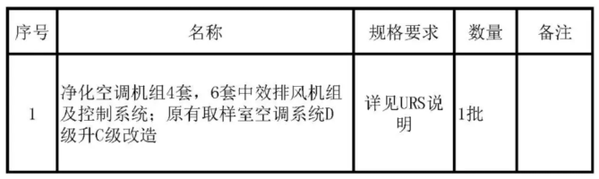 £¨ËÄ£© ÊýÄ¿£º±¾´Î±êµÄ°üÀ¨4Ì×¾»»¯¿Õµ÷»ú×飬6Ì×ÖÐЧÅÅ·ç»ú×é¼°¿ØÖÆÏµÍ³£»ÔÓÐÈ¡ÑùÊÒ¿Õµ÷ϵͳD¼¶ÉýC¼¶Ë¢ÐÂ