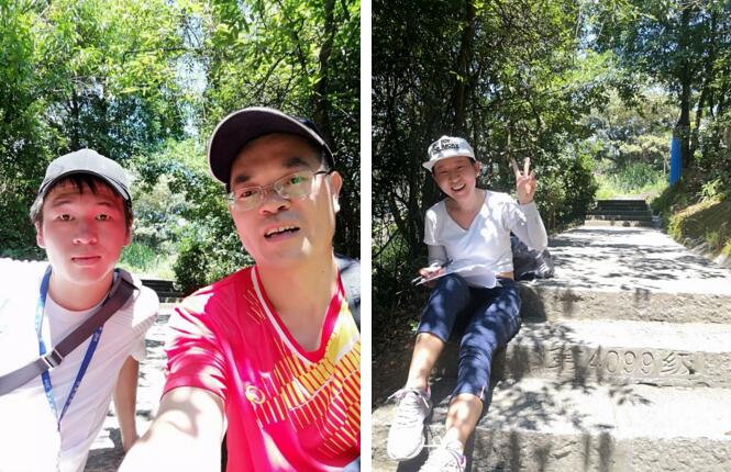 早上八点半人齐,准时开往运动所在,吃完午饭,我们的两个裁判已经提前登至角逐终点(4099级)期待各人的抵达。