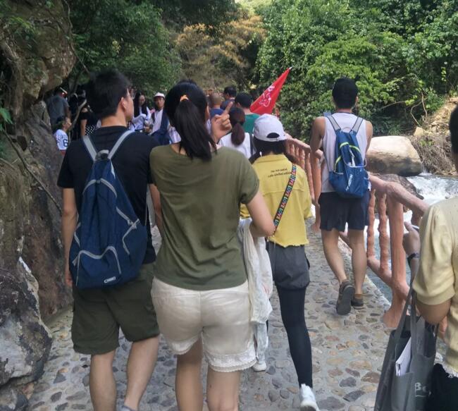 从爬山步径起点-海船木栈道-1499级瀑鸣台-3299级沐瀑台-仙姑天池,每走完一段,都有纷歧样景物的“洗礼”。也曾一度想放弃,但想起还没亲眼眼见仙姑天池呢,想起自己不可拖队员后腿呀,程序又再一次坚定,向前!