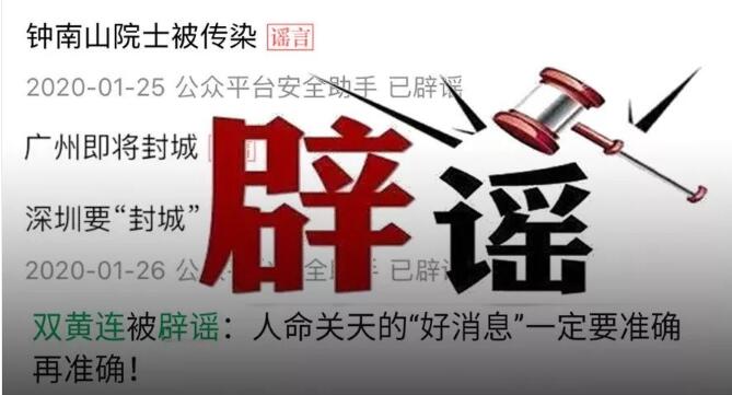 从钟南山院士被病毒熏染到央视节目的假预告  ,从广深两地的先后封城再到双黄连口服液的全城疯抢……在短短一周的时间  ,腾讯辟谣小程序中关于疫情的辟谣资讯就凌驾了50条。