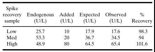 ±íIIB. µ±µÈÌå»ýµÄ»ùÖʺÍQC¼ÓÔÚÒ»Æðʱ£¬ÄÚÔ´ÐÔÂѰ×ÀÛ¼Ó£¨ÏßÐÔ£©Ð¢Ë³µÄʾÀý¡£ÒªÁ죺50mLº¬ÄÚÔ´ÐÔÒ©ÎïµÄ»ùÖÊ£¨25.7U/L£©+ 50mL ±ê׼Ʒ10£¨10U/L£©= ÆÚÍûÖµ17.9U/L£¨Ï໥ÒÔ1£º2µÄ±ÈÀýÏ¡ÊÍ£º12.85U/L+ 5U/L= 17.85U/L£©