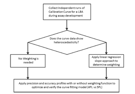 ±¾ÎÄÌá³öÁËÒ»Öֽṹ»¯µÄÒªÁ죬ͨ¹ýÑ¡Ôñ׼ȷµÄÇúÏßÄâºÏÄ£×ÓºÍÈ¨ÖØº¯Êý£¬ÒÔÀ©Õ¹ LBAÆÊÎöÒªÁìµÄ¶¨Á¿¹æÄ££¨Í¼1£©¡£¸ÃÒªÁìÍêÈ«´ÓÊýѧµÄ½Ç¶È³ö·¢£¬È·¶¨Ò»ÌõУ׼ÇúÏßÊÇ·ñÐèÒª¼ÓÈ¨ÖØÒÔ¼°ÄÄÖÖ¼ÓȨ·½·¨×îºÏÀí¡£ÈôÊÇÍøÂçµ½µÄÊý¾ÝÖзºÆð³öµÄÒìÖÊÐÔ£¬ÔòÔÚ׼ȷ¶ÈºÍϸÃܶÈÐÐΪ·½Ã棬¶Ô4PLºÍ5PLÁ½¸öÄ£×Ó£¨ÒÔ¼°È·¶¨µÄÈ¨ÖØº¯Êý£©¾ÙÐнÏÁ¿£»ÈôÊÇδÊӲ쵽Òì·½²îÐÔ£¬Ôò¶Ô²»º¬È¨ÖØÁ¿4PLºÍ5PLÄ£×Ó¾ÙÐнÏÁ¿¡£ÒÔϽ«´ËÔ­ÔòÓ¦ÓÃÓÚ3¸öµä·¶ LBAÆÊÎö°¸Àý¡£ÔÚÕâ3¸öÉúÎïÒ©µÄÒ©´ú¶¯Á¦Ñ§£¨PK£©Ñо¿°¸ÀýÖУ¬×ܹ²¿ª·¢ÁË3¸öÆÊÎöÒªÁ죬²¢ÊӲ쵽3ÖÖ²î±ðÐÎ×´µÄУ׼ÇúÏß¡£ÆäÖУ¬Á½¸öÆÊÎöÒªÁ죨°¸ÀýAºÍB£©Ê¹ÓÃÁ˵绯ѧ·¢¹â£¨ECL£©Æ½Ì¨£¬¶øÁíÒ»¸öÆÊÎöÒªÁ죨°¸ÀýC£©Ê¹ÓÃÁ˱ÈÉ«ELISAƽ̨¡£