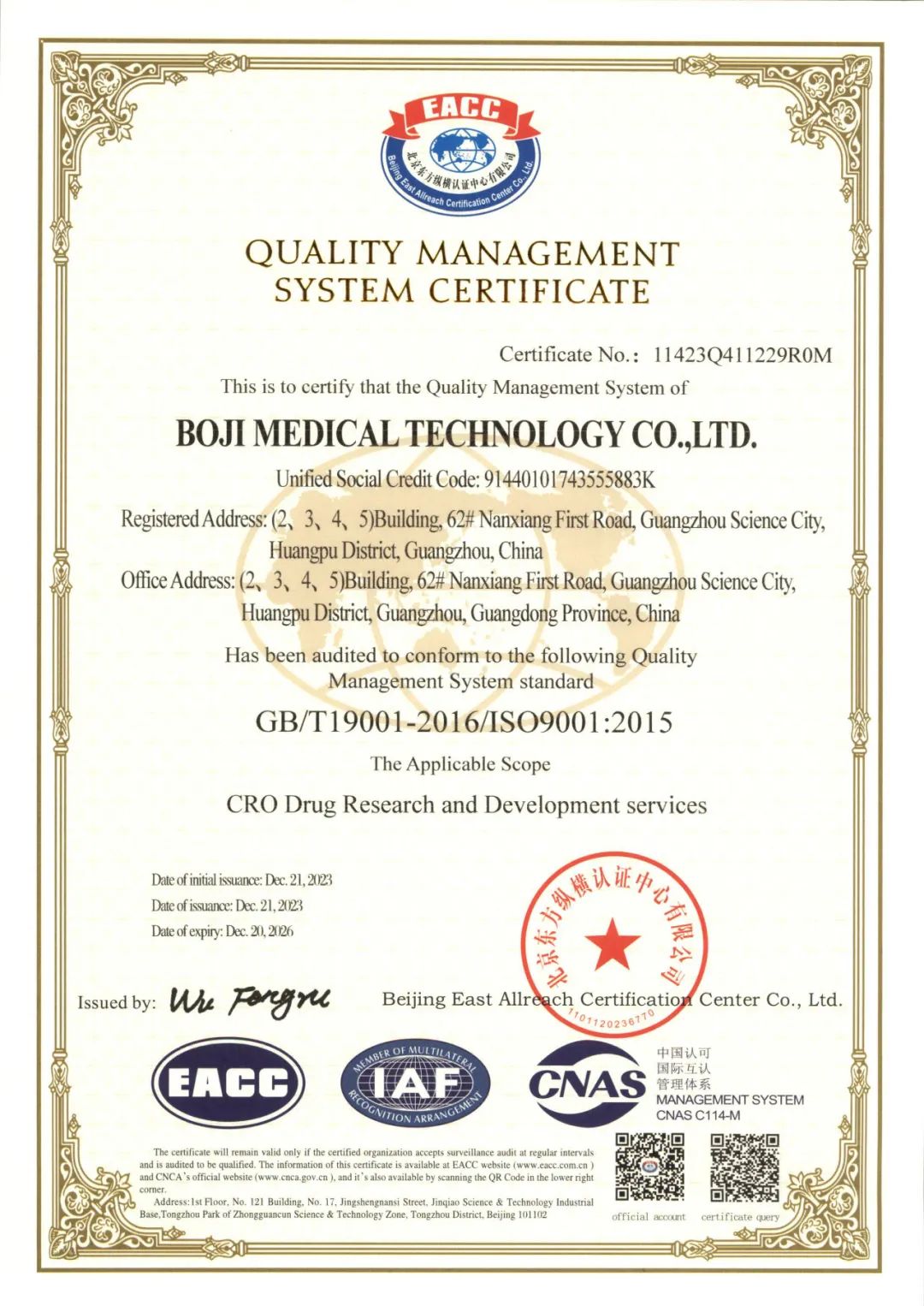333体育官网医药相关认真人体现,本次认证通过彰显了333体育官网医药具有为客户提供高品质服务的资质以及切合规则规范的质量系统。通过ISO 9001提供的质量管理框架,333体育官网医药将始终以客户为中心,以质量为生命,一直完善和优化企业的管理流程和产品质量,为客户提供更优质、更高效、更专业的CRO服务!